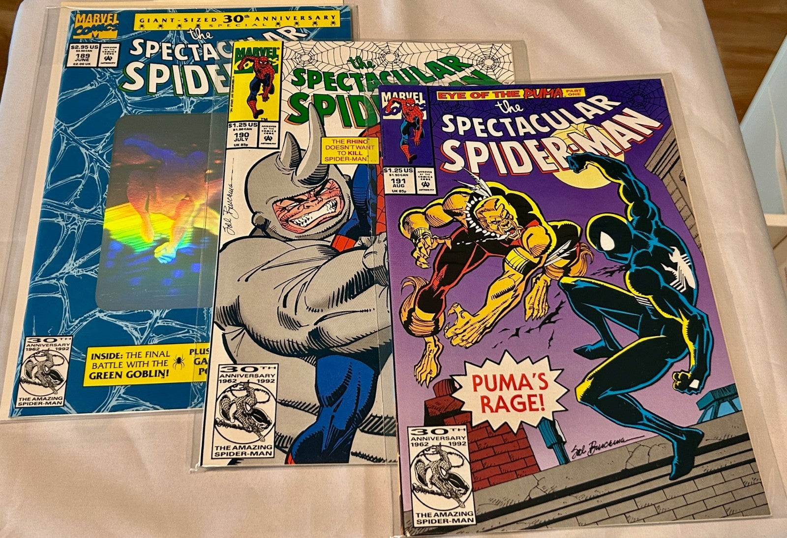The Spectacular Spider-Man (1992) comic book lot - Issue 189 - 191 (F/VF) see pic, bagged - Marvel Comics (Rare, hard to find) Will ship USPS in box with packing, will ship within next business day after payment clears, please ask questions if you have any, thank you!