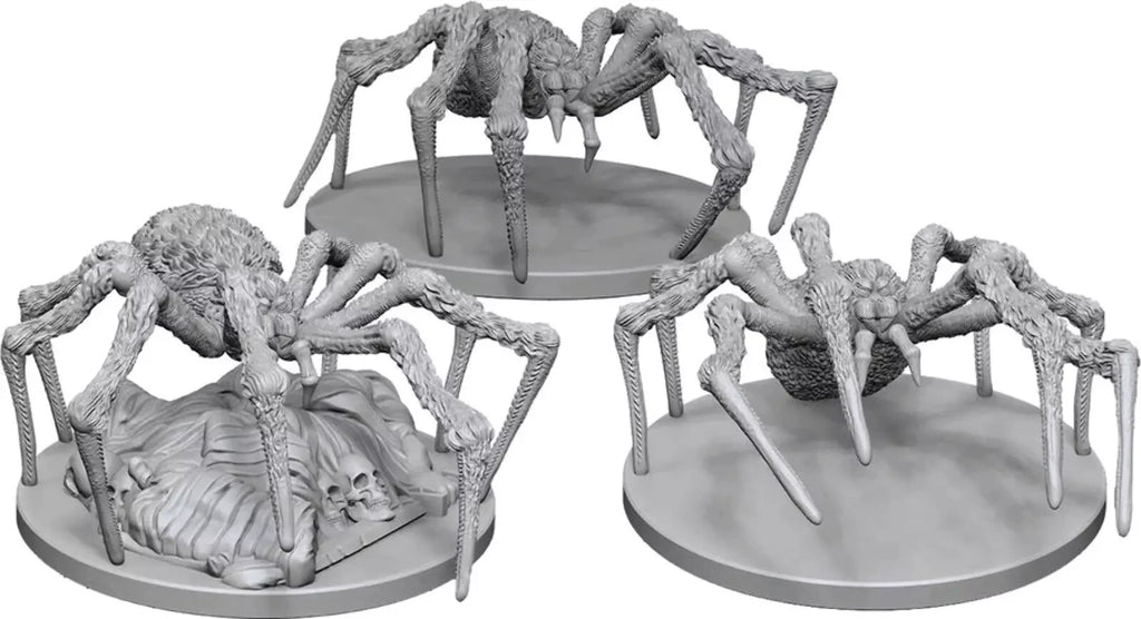 1 Ea - D&D / Dungeons and Dragons miniature - Wiz Kids / Nolzur's - Spiders - W1 - 3 pack set (Unpainted plastic, medium 1 in bases) - New / Sealed