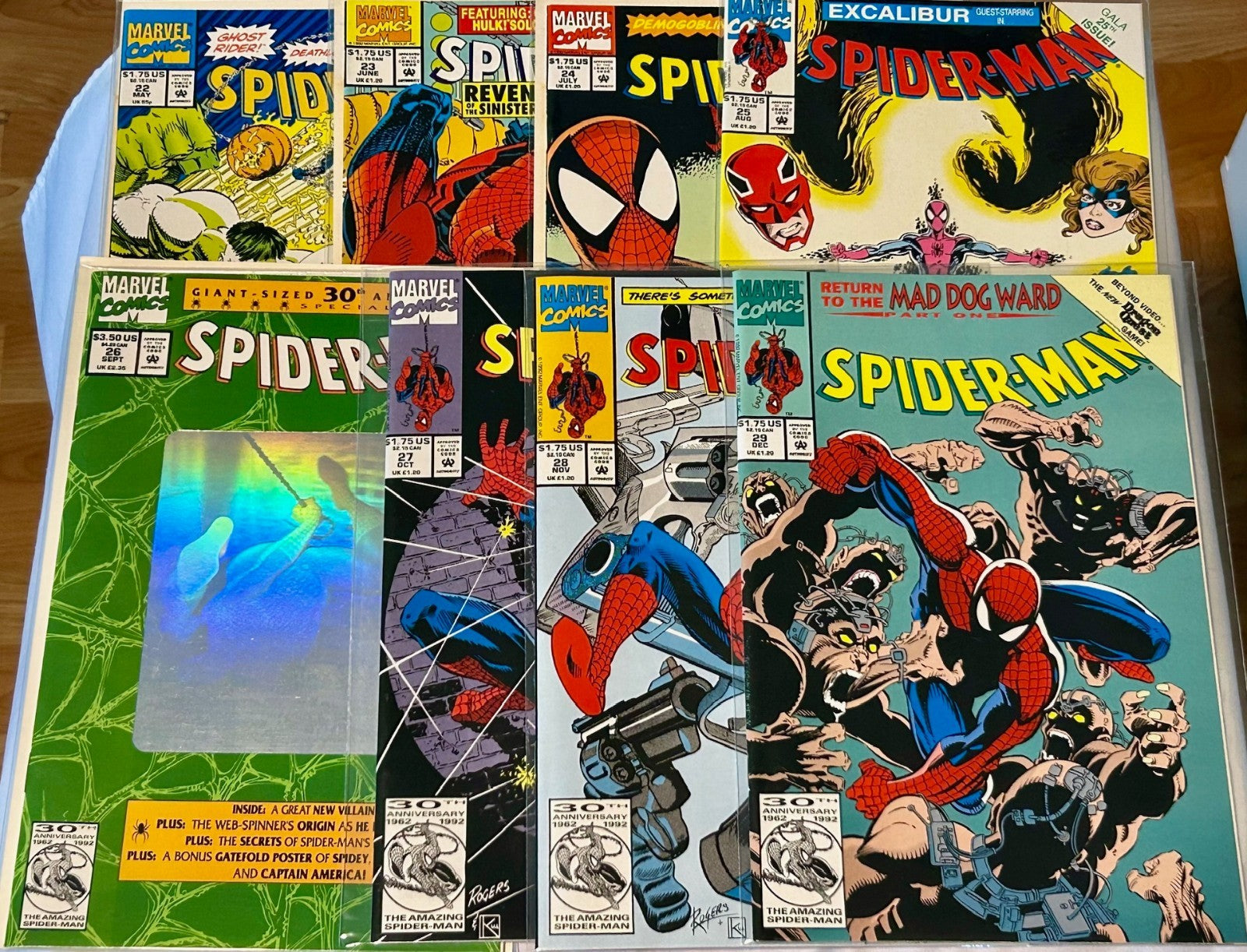 Spider-Man (1991/92) 8 issue Comic lot #22 - 29 Marvel Comics Hologram Hulk