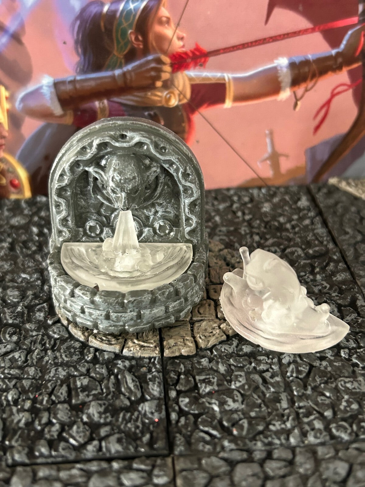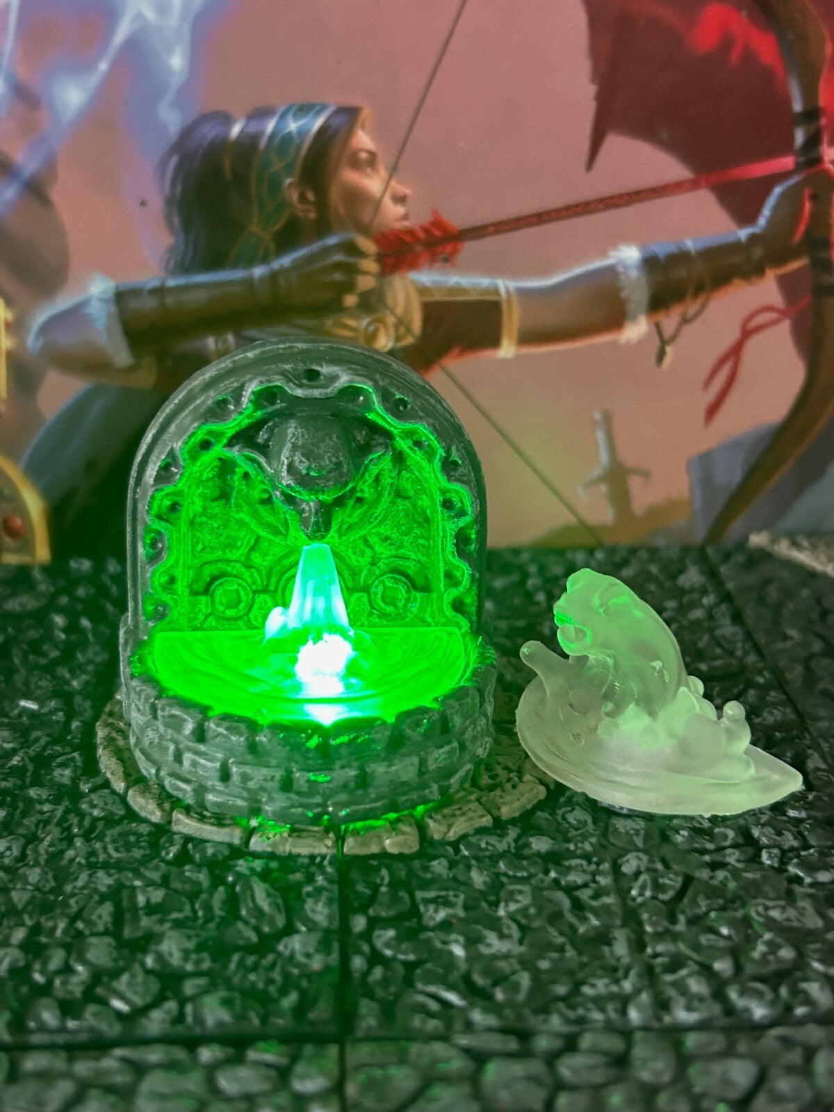 Green LED Light Up Lit 3pc Stone Fountain Dungeons & Dragons D&D painted terrain