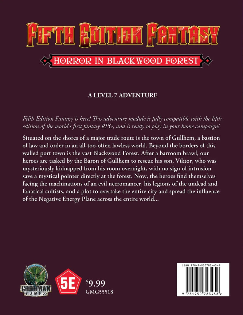 1 Ea - New / Unused - Horror in the Blackwood Forest adventure module #18 (7th Level Range Adventure) - Fifth Edition Fantasy 5E DnD - from Goodman Games - for TTRPG Games like D&D / Dungeons and Dragons