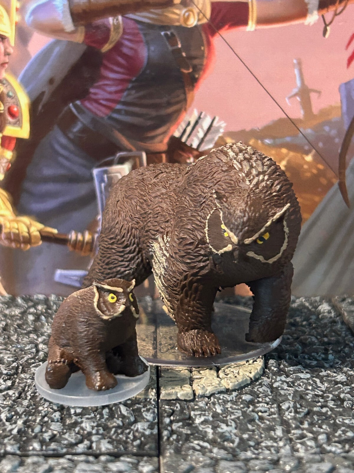 Owlbear & Baby 2 pc painted miniature Dungeons Dragons D&D large druid Brown
