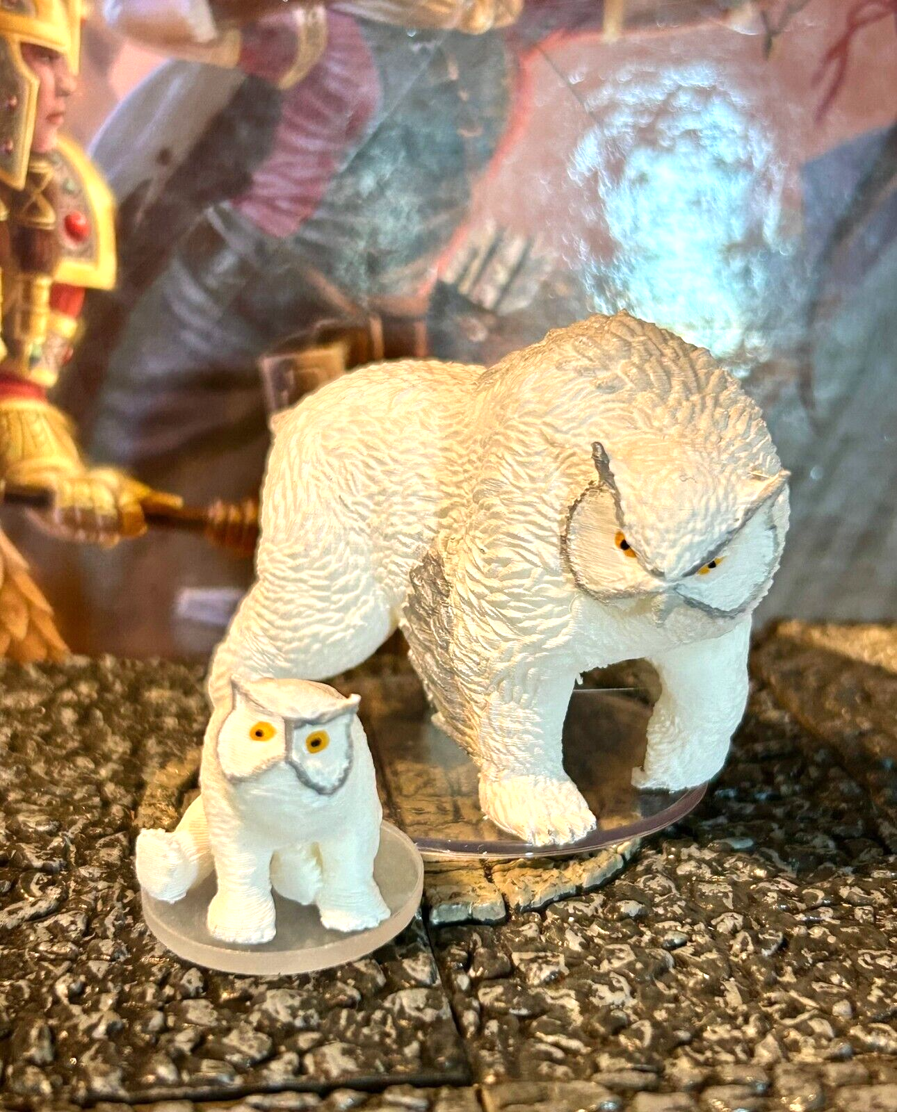 Owlbear & Baby 2 pc painted miniature Dungeons Dragons D&D large druid snowy