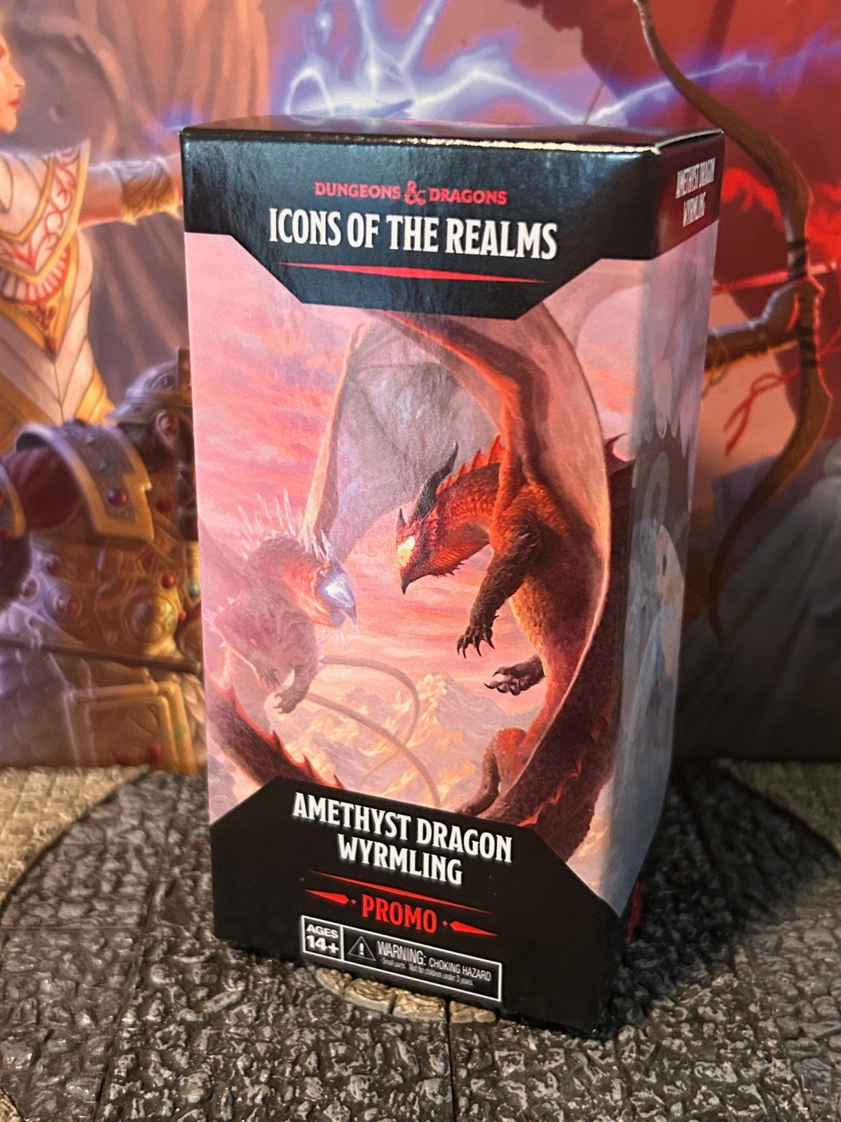 1 Ea - New / Unused - D&D / Dungeons and Dragons - Amethyst Dragon Wyrmling Promo Boxed 2 pk Mini / Rare (medium, 1 in base, pre-painted plastic miniature) - Icons of the Realms / Fizban's Treasury