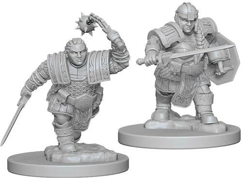 1 Ea - D&D / Dungeons and Dragons miniature - Wiz Kids / Nolzur's - Female Dwarf Fighter - W12 - 2 pack set (Unpainted plastic, medium 1 in bases) - New / Sealed