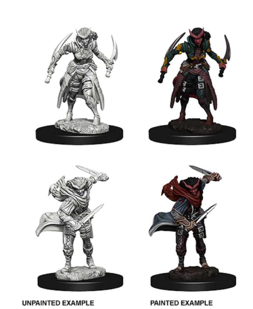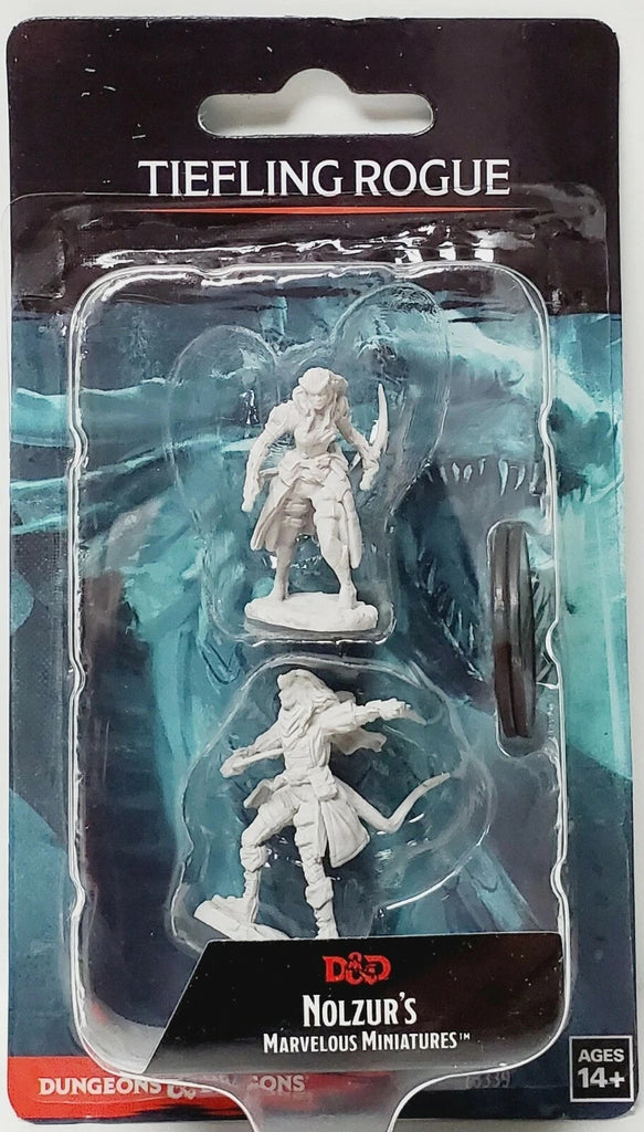 1 Ea - D&D / Dungeons and Dragons miniature - WizKids / Nolzur's - Female Tiefling Rogue - W7 - 2 pack set (Unpainted plastic, medium 1 in bases) - New / Sealed