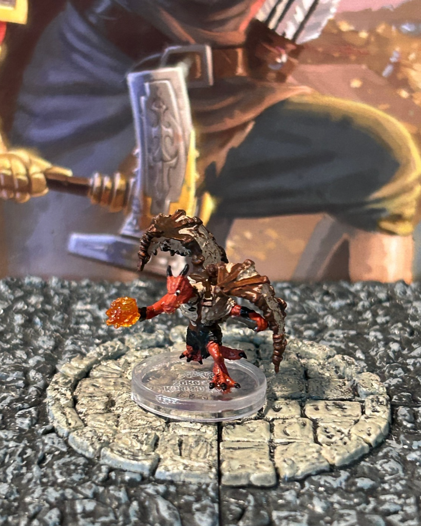 1 Ea - New / Unused - Dungeons and Dragons / D&D miniature - Fangs and Talons - "Kobold Scale Sorcerer (Fire)" (Medium, 1 in clear base, pre-painted plastic) figure # 24b/45