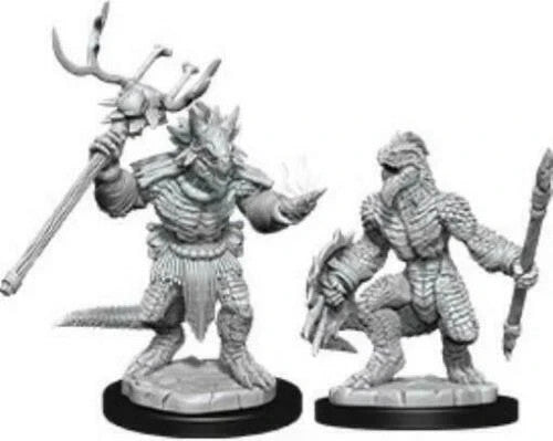 1 Ea - D&D / Dungeons and Dragons miniature - Wiz Kids / Nolzur's - Lizardfolk and Lizardfolk Shaman 2 pk - W12 (Unpainted plastic, medium 1 in bases) - New / Sealed