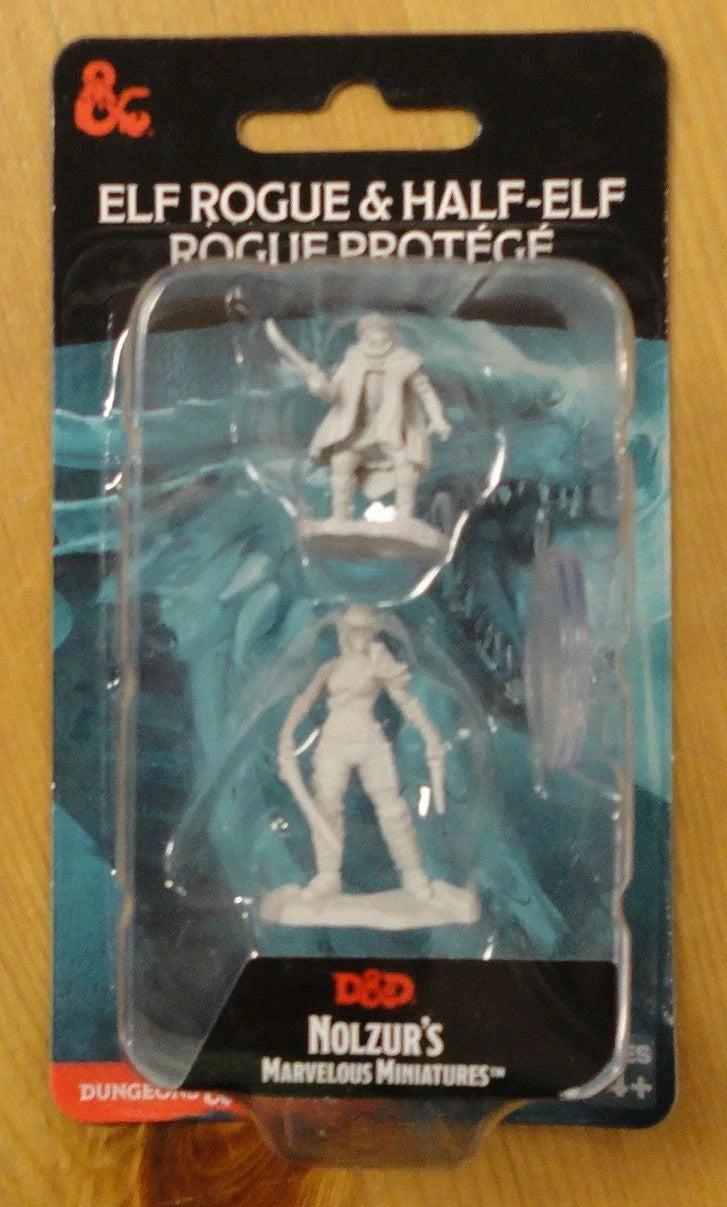 1 Ea - D&D / Dungeons and Dragons miniature - Wiz Kids / Nolzur's - Elf Rogue & Half Elf Rogue Protege - 2 pack - W19 (Unpainted plastic, medium 1 in bases) - New / Sealed