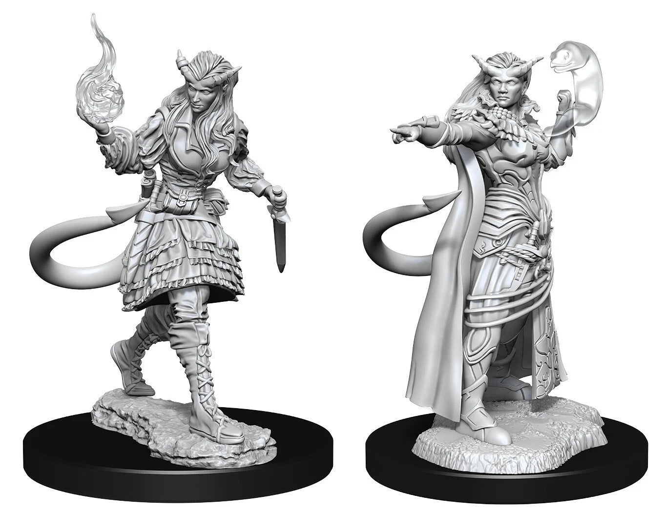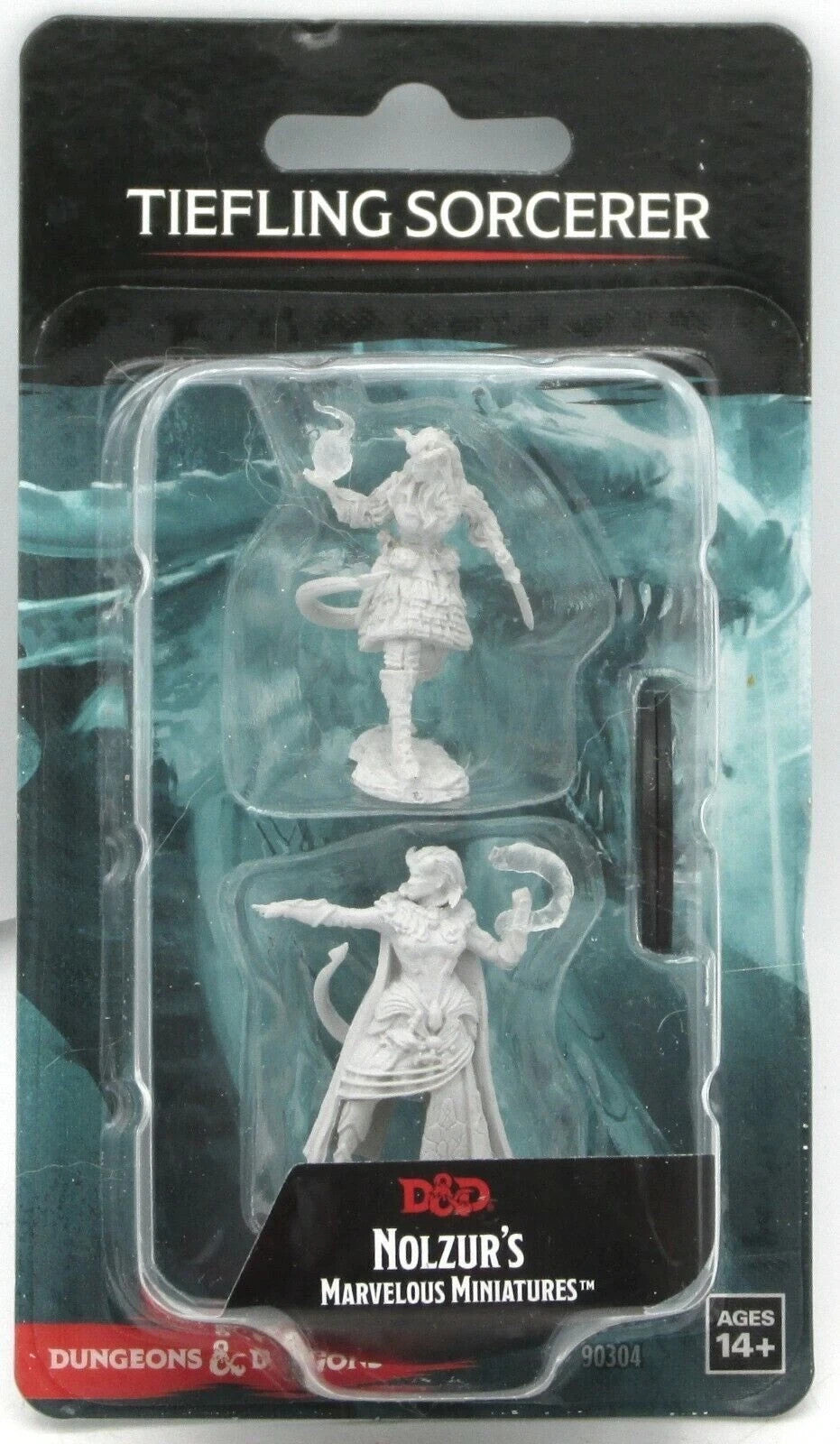 1 Ea - D&D / Dungeons and Dragons miniature - WizKids / Nolzur's - Female Tiefling Sorcerer - W15 - 2 pack set (Unpainted plastic, medium one inch bases) - New / Sealed