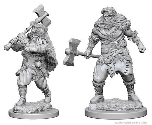 1 Ea - D&D / Dungeons and Dragons miniature - Wiz Kids / Nolzur's - Male Human Barbarian - 2 pack set (Unpainted plastic, medium 1 in bases) - New / Sealed / W1