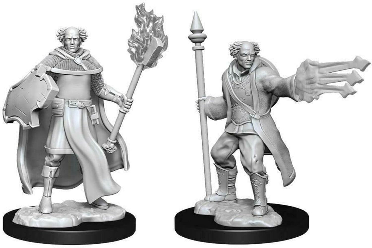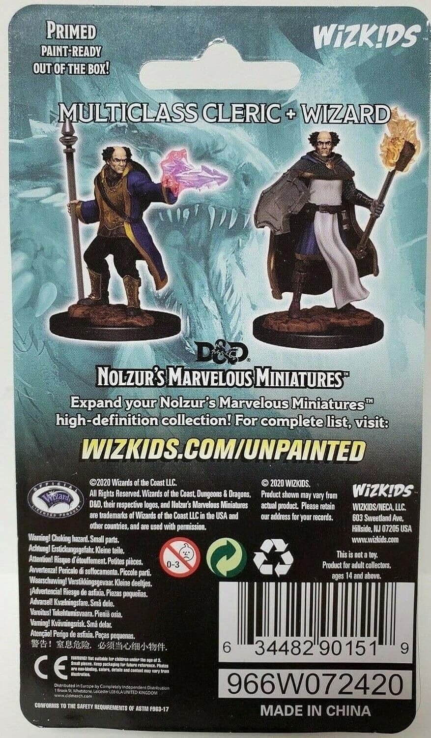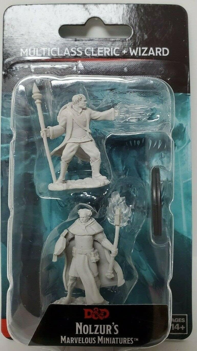 1 Ea - D&D / Dungeons and Dragons miniature - Wiz Kids / Nolzur's - Male Multiclass Cleric Wizard - W13 - 2 pack set (Unpainted plastic, medium 1 in bases) - New / Sealed