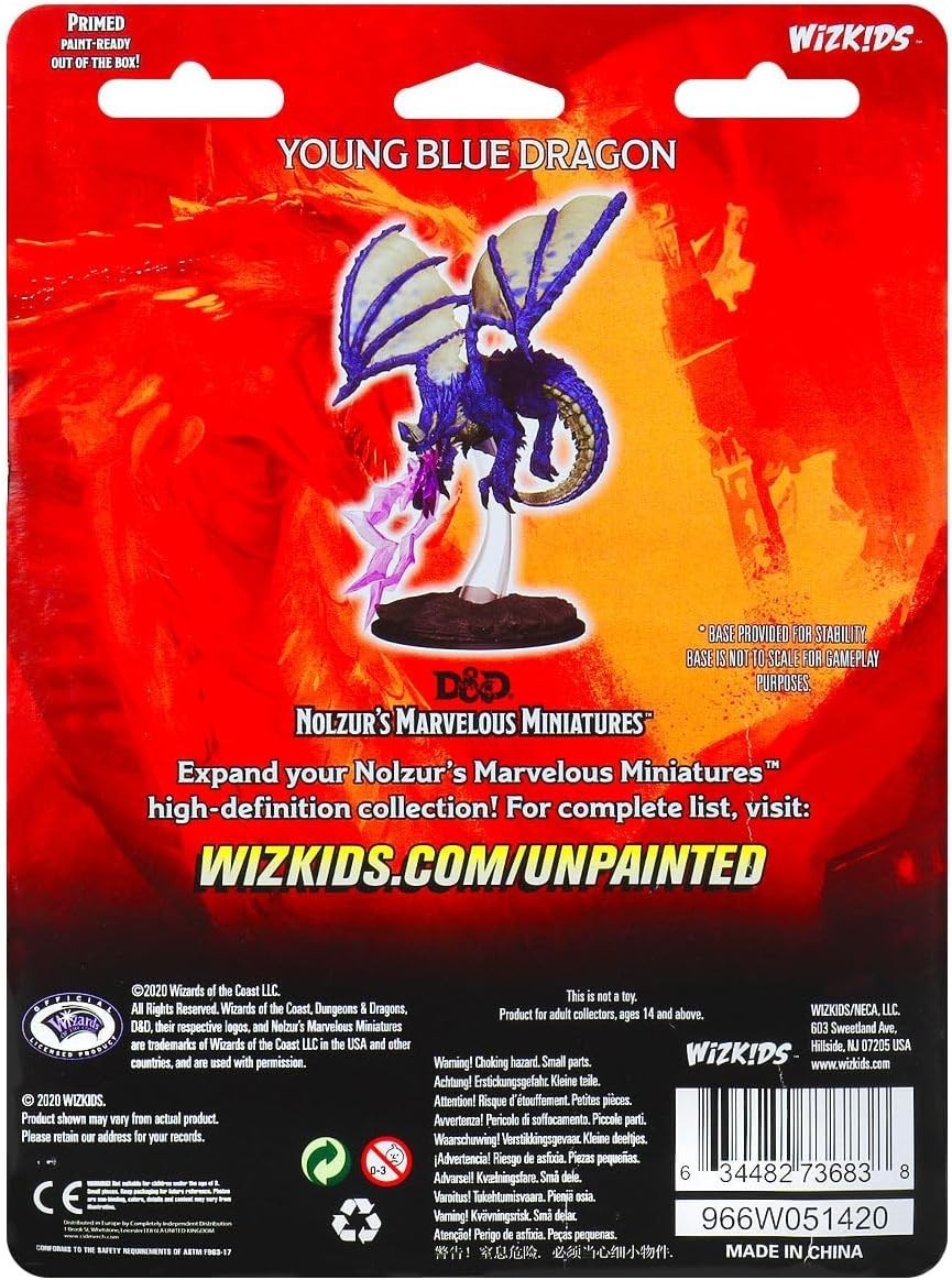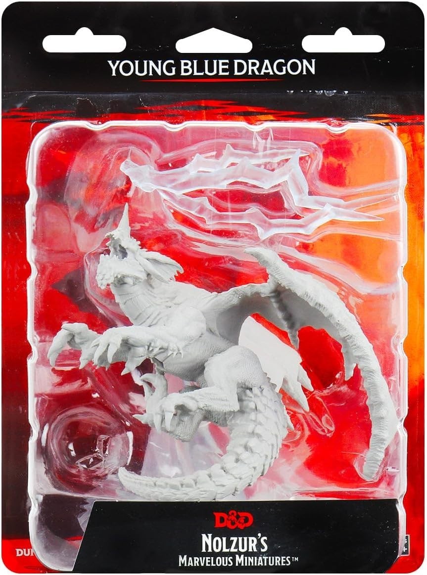 1 Ea - D&D / Dungeons and Dragons miniature - WizKids / Nolzur's - Young Blue Dragon - W8 - (Unpainted plastic, huge 3 in base, approx 5 1/2 in tall) - New / Sealed