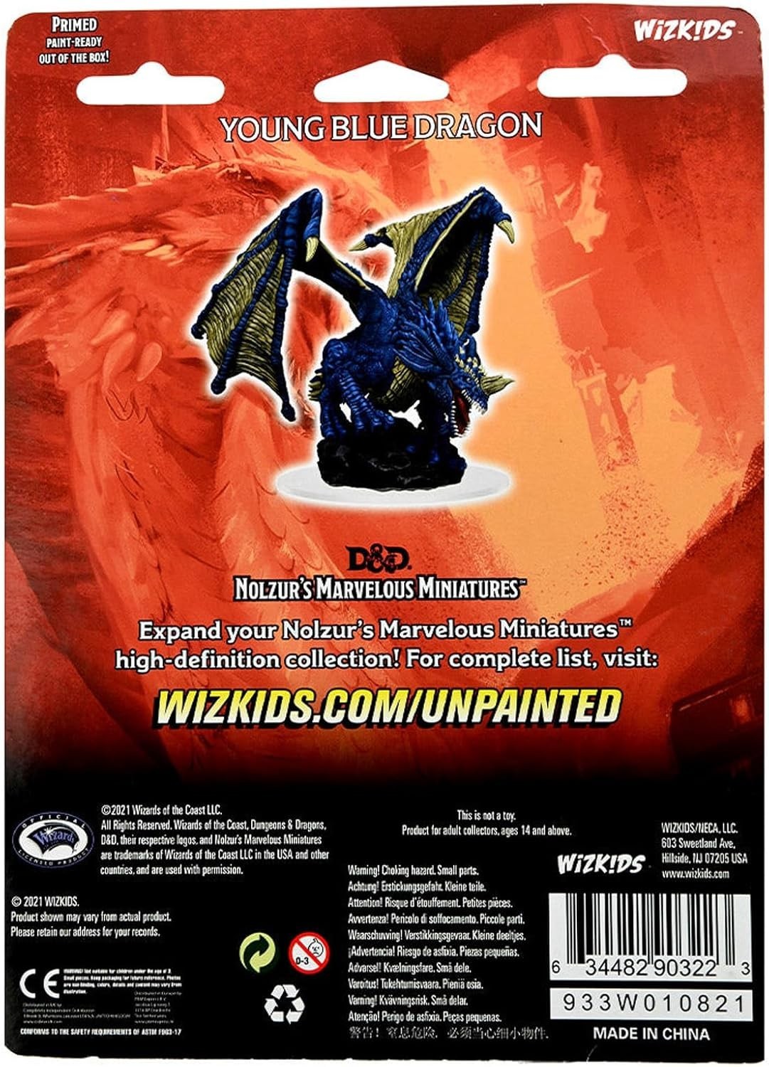 1 Ea - D&D / Dungeons and Dragons miniature - WizKids / Nolzur's - Young Blue Dragon - W15 - (Unpainted plastic, huge 3 in base, approx 5 1/2 in tall) - New / Sealed