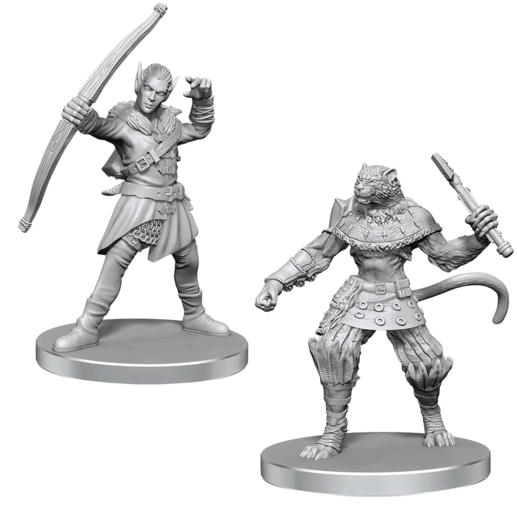 1 Ea - Pathfinder Battles / Deep Cuts miniature - Wiz Kids - Elf Hunter & Catfolk Bandit - W26 - 2 pack set (medium, 1 in base, unpainted plastic) - New / Sealed