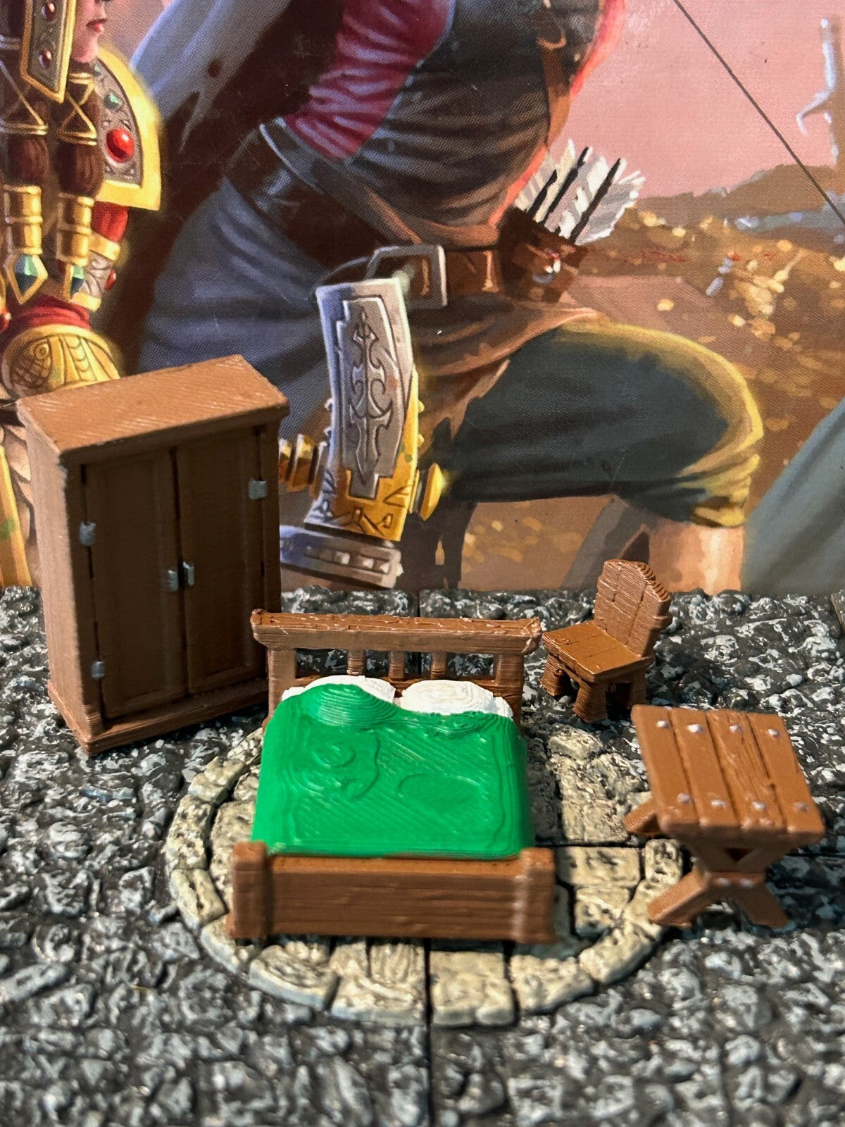 Inn Bedroom 4pc set printed painted miniature Dungeons & Dragons D&D terrain bed