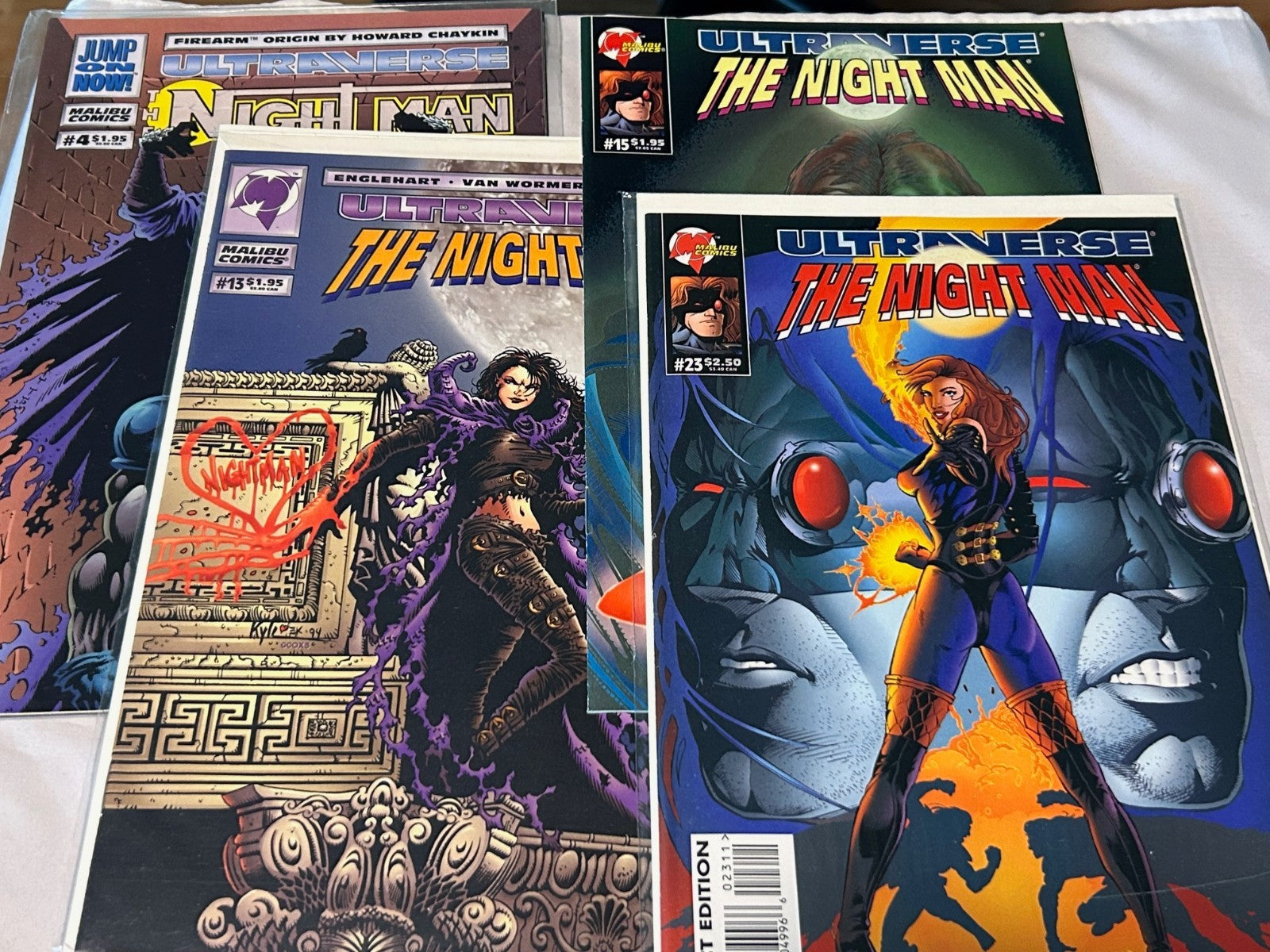 The Night Man 4 comic lot (1993) comic book - Issue 4,13,15,23 F / NM see pic, bagged - Malibu Ultraverse / Marvel Comics (Rare, hard to find) Will ship USPS in box with packing, will ship within next business day after payment clears, please ask questions if you have any, thank you!
