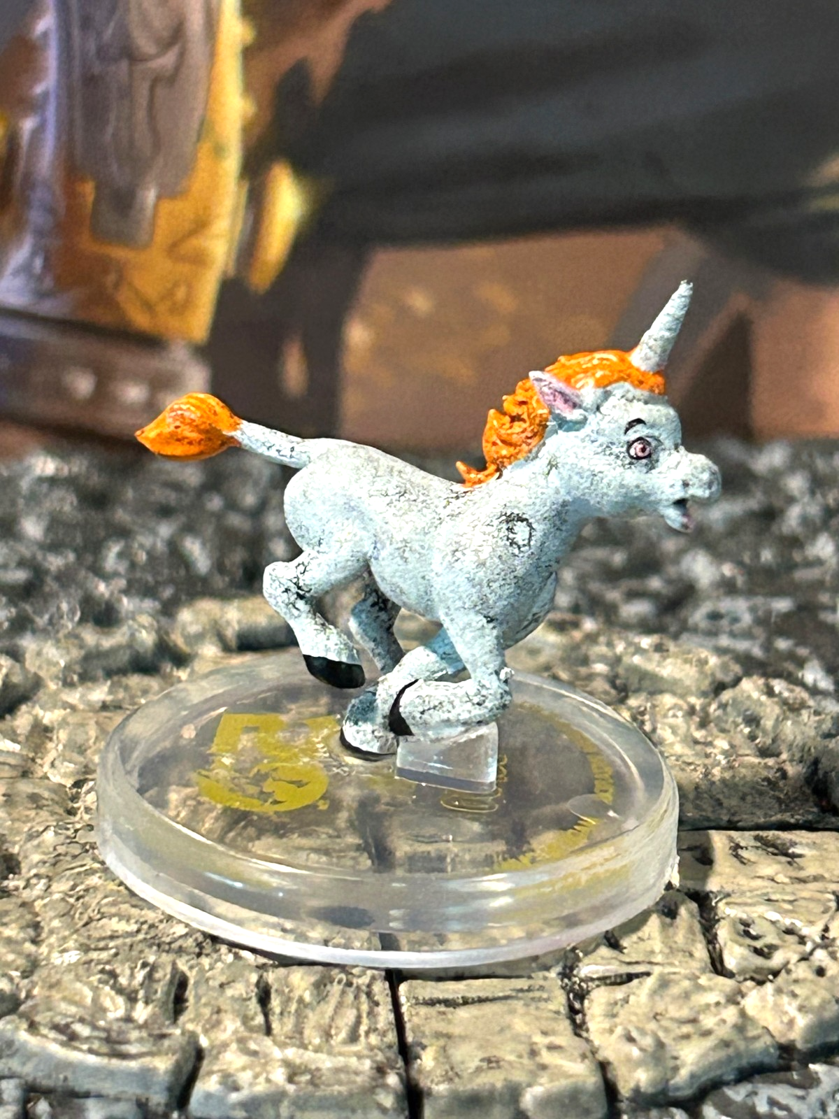 1 Ea - New / Unused - D&D / Dungeons and Dragons - Uni (the Baby Unicorn) (Gold Base Chase Mini) # 58 (medium, 1 in base, prepainted plastic miniature) - Very Rare!! - Icons of the Realms - from the D&D 50th Anniversary set