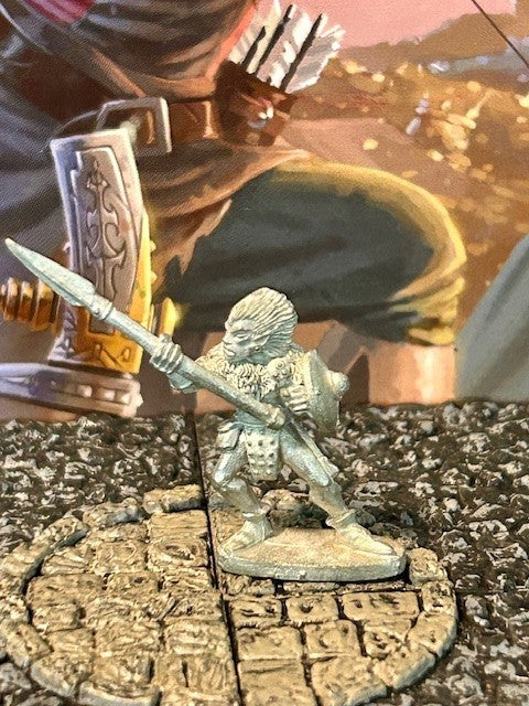 1 ea / Used Vintage - Wood Elf Fighter w/ Spear and Shield (unpainted metal miniature) - for use with Dungeons and Dragons / D&D / Pathfinder / and other TTRPG - Grenadier Dragon Lords, as is