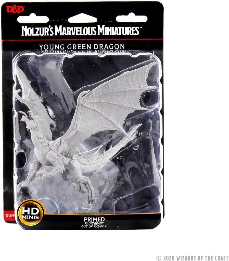 1 Ea - D&D / Dungeons and Dragons miniature - WizKids / Nolzur's - Young Green Dragon - W8 (Unpainted plastic, huge 3 in base, approx 4 1/2 in tall and wide) - New / Sealed